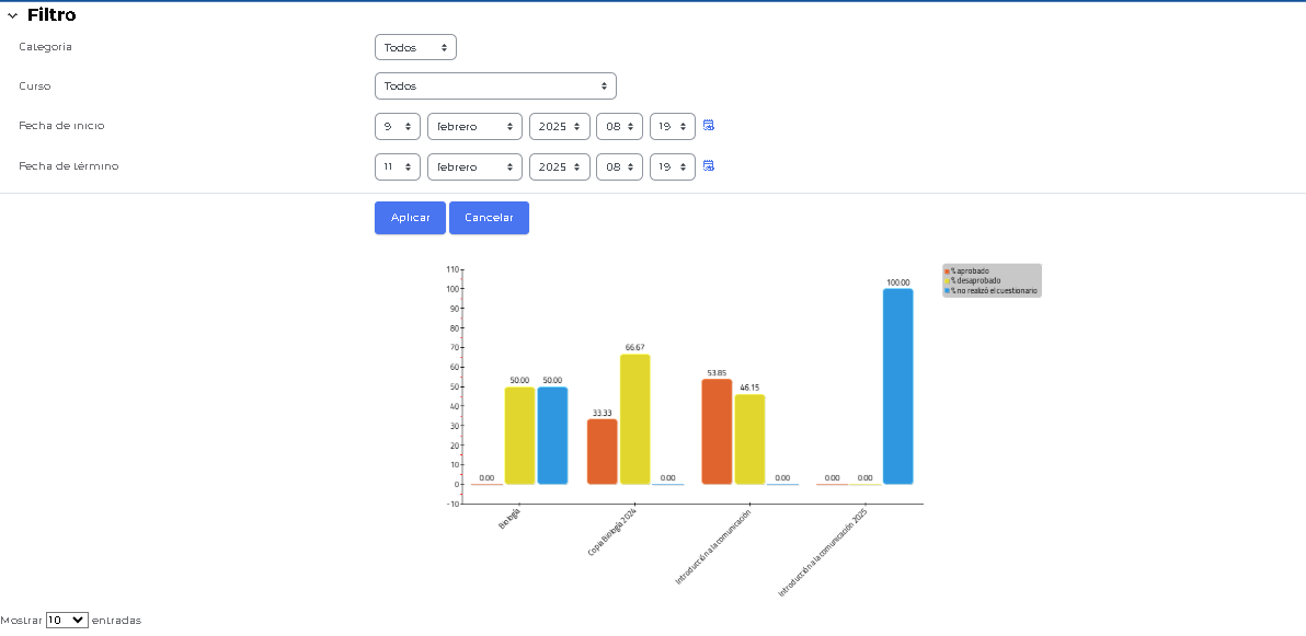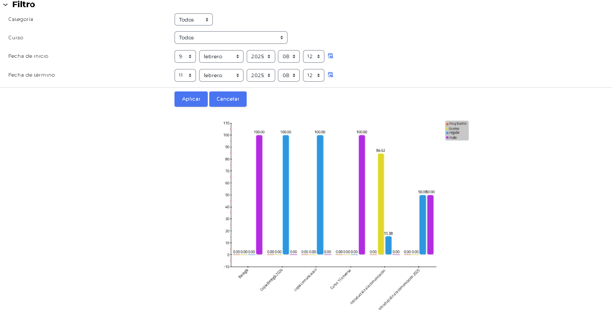 Informe de calificacion de cuestionarios por cursos y categorias mostrando los alumnos matriculados, cantidad de secuencias didacticas, cantidad de cuestionarios en secuencias y sus calificaciones por curso |